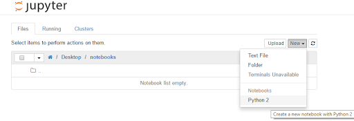Navigate back to http://localhost:8888/tree, browse to the folder where you want to create it, and then use the New menu on the right: